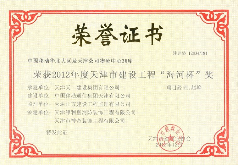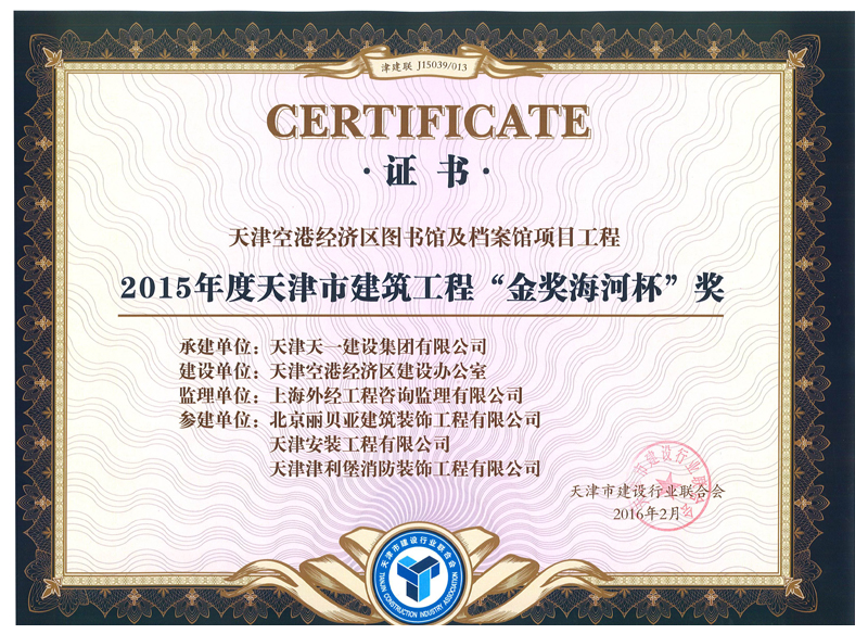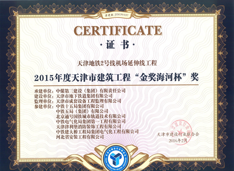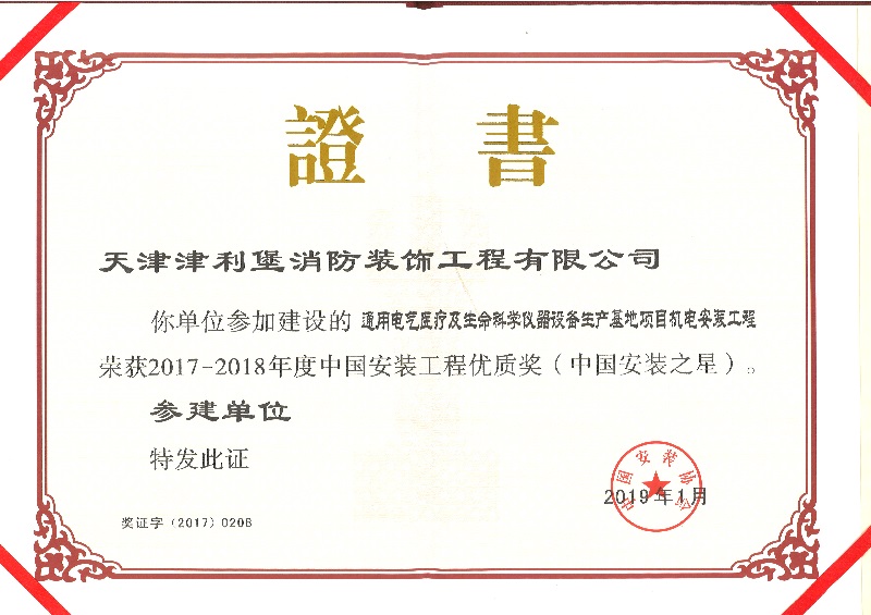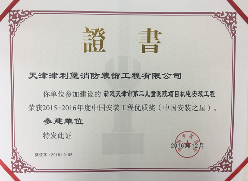公司承接了包括寫字樓、綜合樓、酒店、商場、金融保險、醫療教育、飛機制造、軌道交通、工業企業等一大批具有社會影響力的工程項目,如:天津津匯廣場、天津泰達現代服務產業區G2地塊(泰達MSD-C區)、濱海文化商務中心、天津高銀117大廈、天津濱海喜來登酒店、天津天河城購物中心、天津市第二兒童醫院、空客A320、A330項目、新一代運載火箭產業化基地項目、津濱快速輕軌工程、天津地鐵一、二、六號線工程、天津濱海國際機場二期擴建工程項目機場工程T2航站樓、北京新機場停車樓及綜合服務樓、天津平安泰達金融中心以及天津一汽豐田汽車有限公司新能源工廠建設消防工程等項目,積累了豐富的施工及管理經驗,多次贏得業主的認可和表彰,并有7項參建工程獲得天津市建設工程“海河杯”獎、有6項參建工程獲得天津市建設工程“金獎海河杯”獎、有3項參建工程獲得“國家優質工程獎”、有15項參建工程獲得中國建設工程“魯班獎”、有2項參建工程獲得“中國安裝之星”優質獎、有1項參建工程獲得北京市建筑長城杯工程金質獎。同時被中國消防協會評定為AAA信用等級企業。公司以卓越的工程品質和全方位的服務得到了社會各界的好評,在同行業中享有較高的信譽。